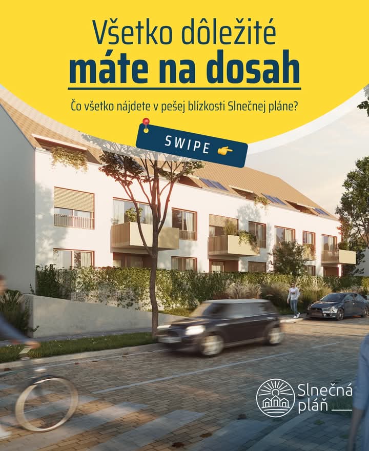 Na Slnečnej pláni navrhujeme zelené vnútrobloky a zóny bez áut tak, aby sa susedia poznali po mene a deti mali kde bezpečne behať. Vytvárame prostredie, kam sa budete radi vracať nielen kvôli krásnemu bytu, ale kvôli celkovej atmosfére a komunite. 🏡💛